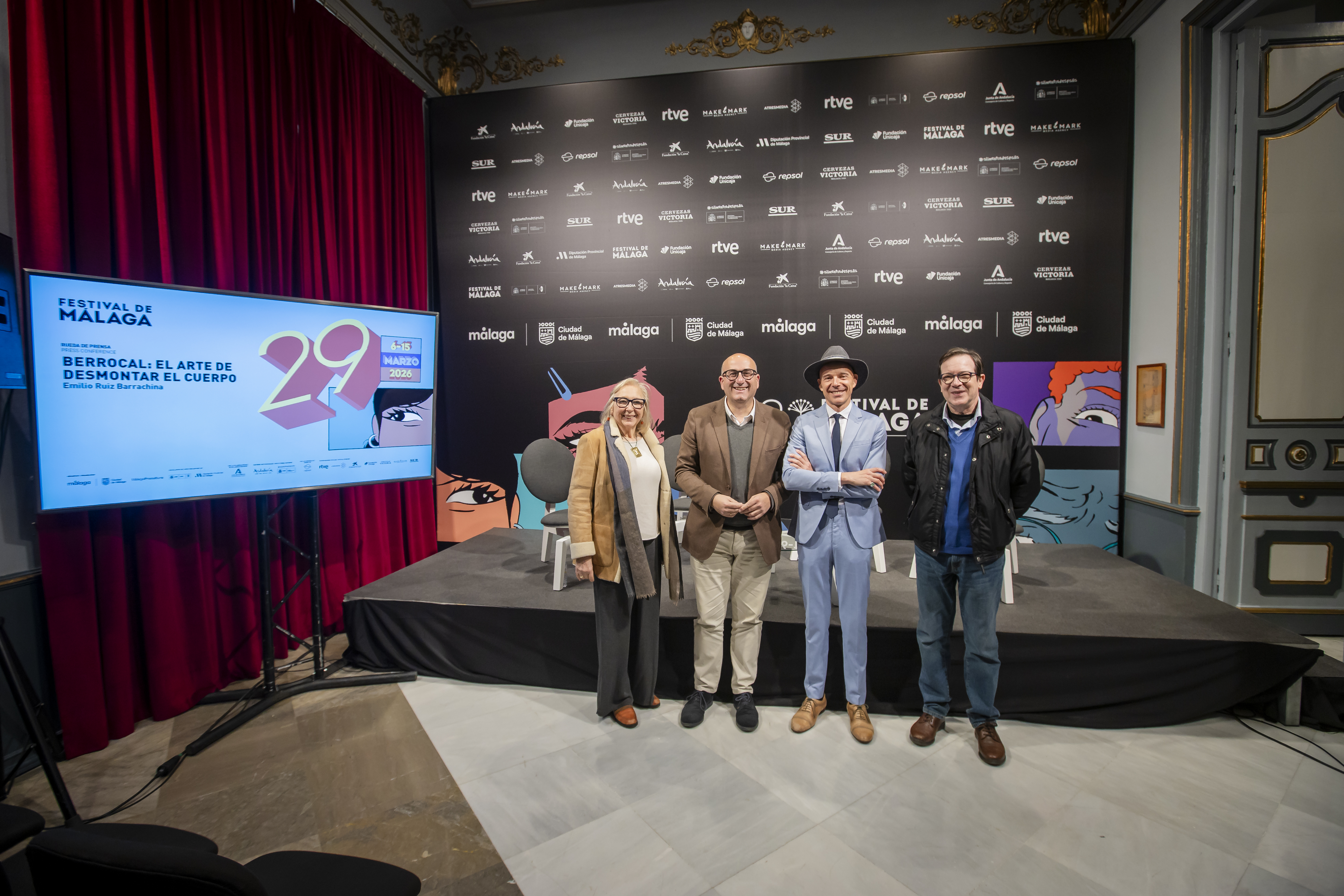 En el encuentro con los medios participaron Manuel López Mestanza, diputado de Cultura de la Diputación de Málaga; Cristina de Braganza, presidenta de la Fundación Escultor Berrocal para las Artes y viuda del artista; el director del documental Emilio Ruiz Barrachina; y el productor ejecutivo Francisco Quintero González.