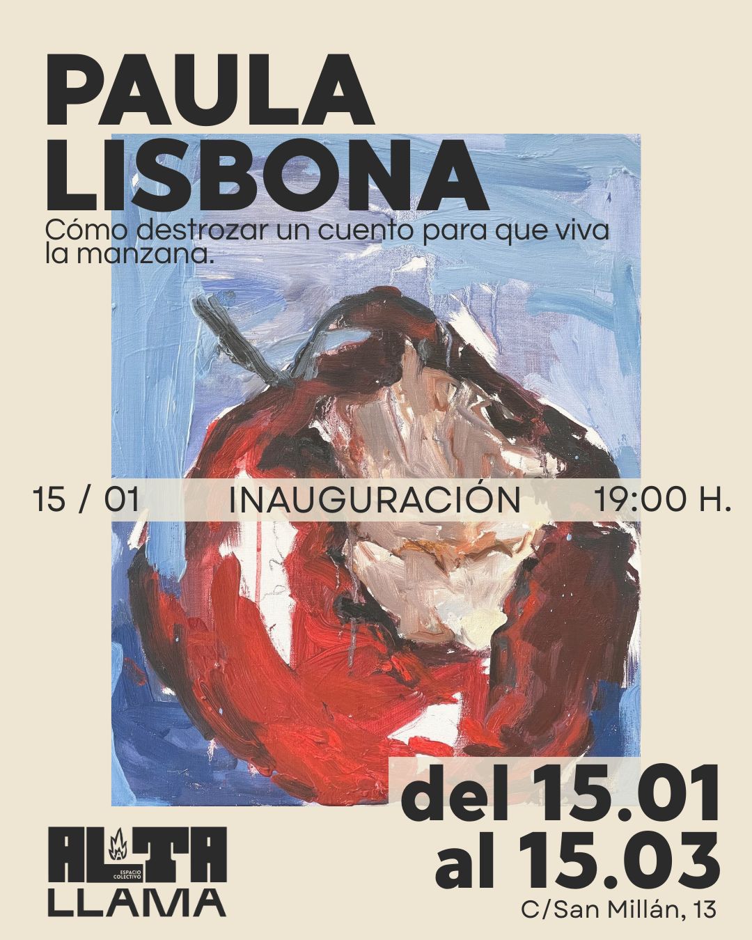 El panorama cultural independiente de Málaga se amplía con la apertura de ALTALLAMA, un nuevo espacio artístico situado en el barrio de Capuchinos y gestionado por un colectivo de mujeres creadoras que apuesta por una mirada ética, inclusiva y sostenible. El espacio inicia su programación expositiva con la muestra Cómo destrozar un cuento para que la manzana viva, de la artista Paula Lisbona, una propuesta que cuestiona los relatos tradicionales desde una perspectiva contemporánea y feminista.